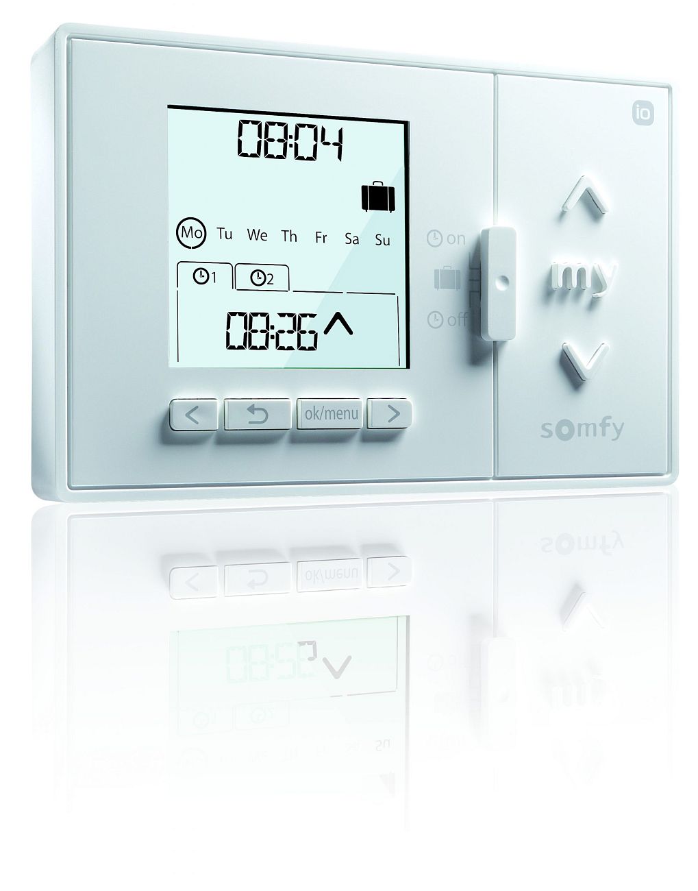 Jedním kliknutím na ovladači nebo v jednoduše použitelné mobilní aplikaci TaHoma® zatáhnete rolety nebo zhasnete všechna světla v domě, když každé ráno opouštíte dům. Představte si situaci, kdy po ránu opět nestíháte. Vyběhnete z domu a jedním kliknutím tlačítka na Vašem mobilním zařízení máte o klid postaráno. Až se vrátíte domů, znovu je otevřete nebo rozsvítíte jedním pokynem. Při náhlé změně počasí, například při sledování filmu, můžete z pohodlí Vašeho gauče stáhnout rolety bez pohnutí se z místa.
